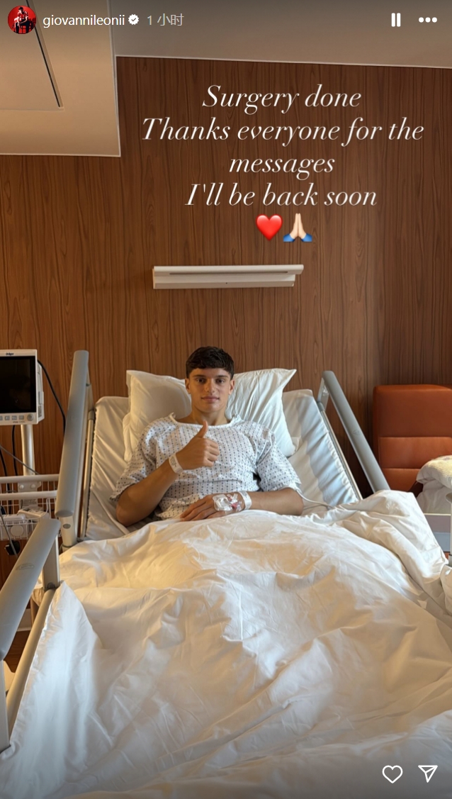 莱奥尼晒出在病床上的照片c罗在哪个足球俱乐部现在,苏超直播在线观看配文:“手术完成,感谢大家的祝福信息,我会很快回归。”