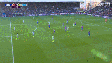 上半场加时补赛3分钟,半场结束,曼城暂1-0水晶宫。